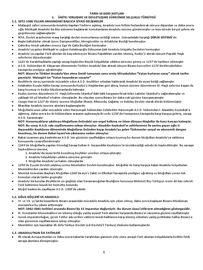 10 Sinif Tarih Ders Notu