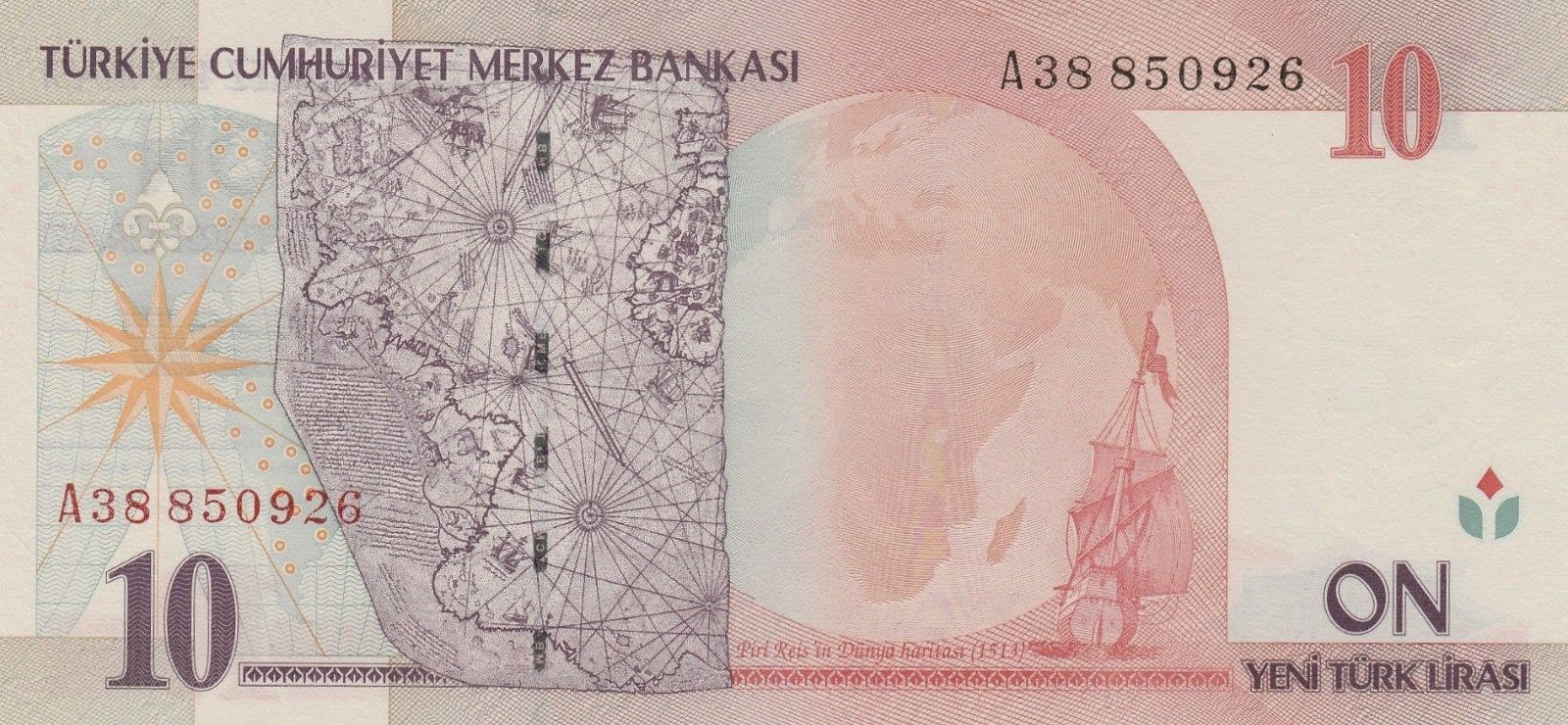 Turkey 10 Lira 2005 President Mustafa Kemal Ataturk World Map Of 1513 By Piri Reis Sailing Ship Banknot Turk Lirasi Nostalgia