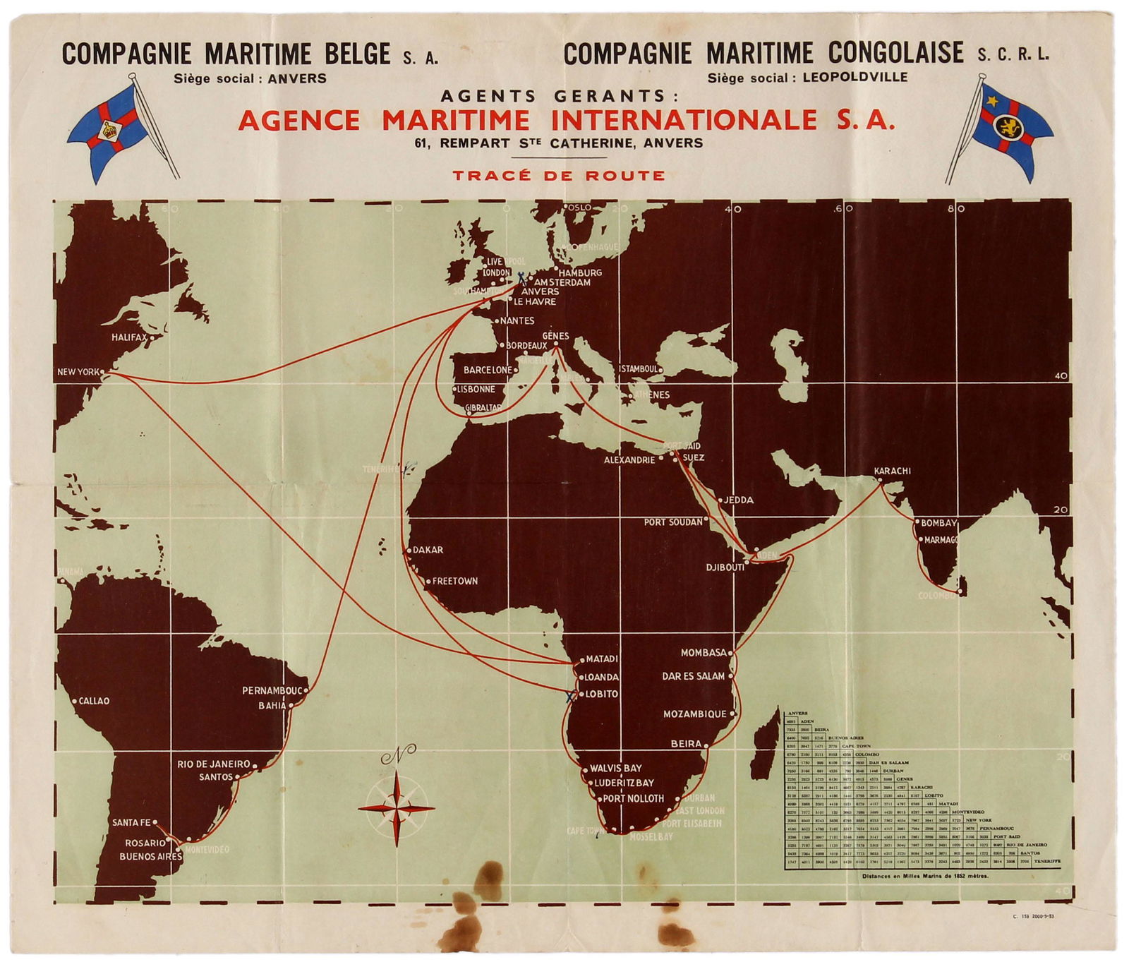 Travel Poster Compagnie Maritime Belge Congolaise Route Nov 16 2019 Antikbar Original Vintage Posters In United Kingdom