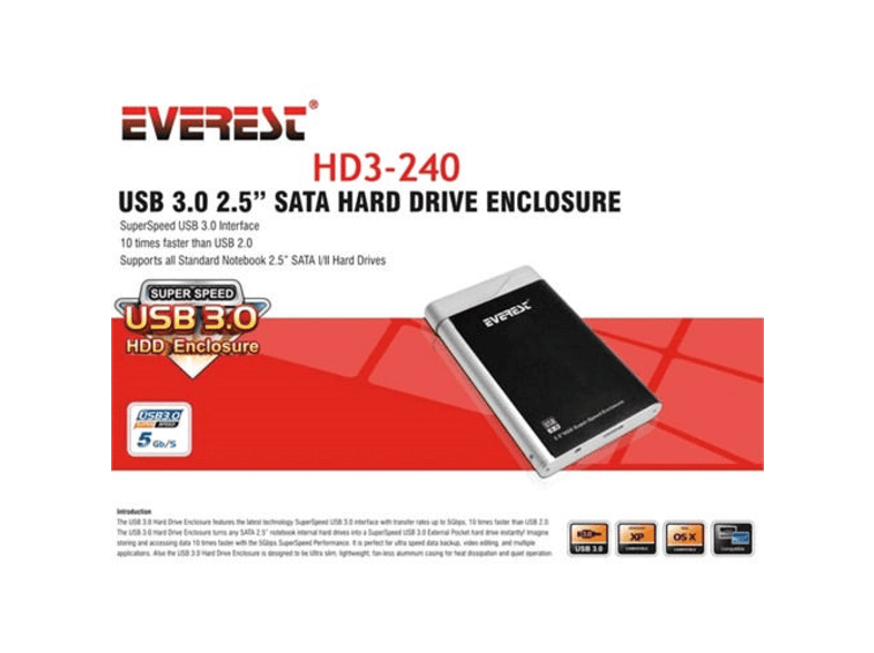 Everest Hd3 240 Harici 2 5 Usb 3 0 Harddisk Kutusu Siyah Diger Bilgisayar Parcalari