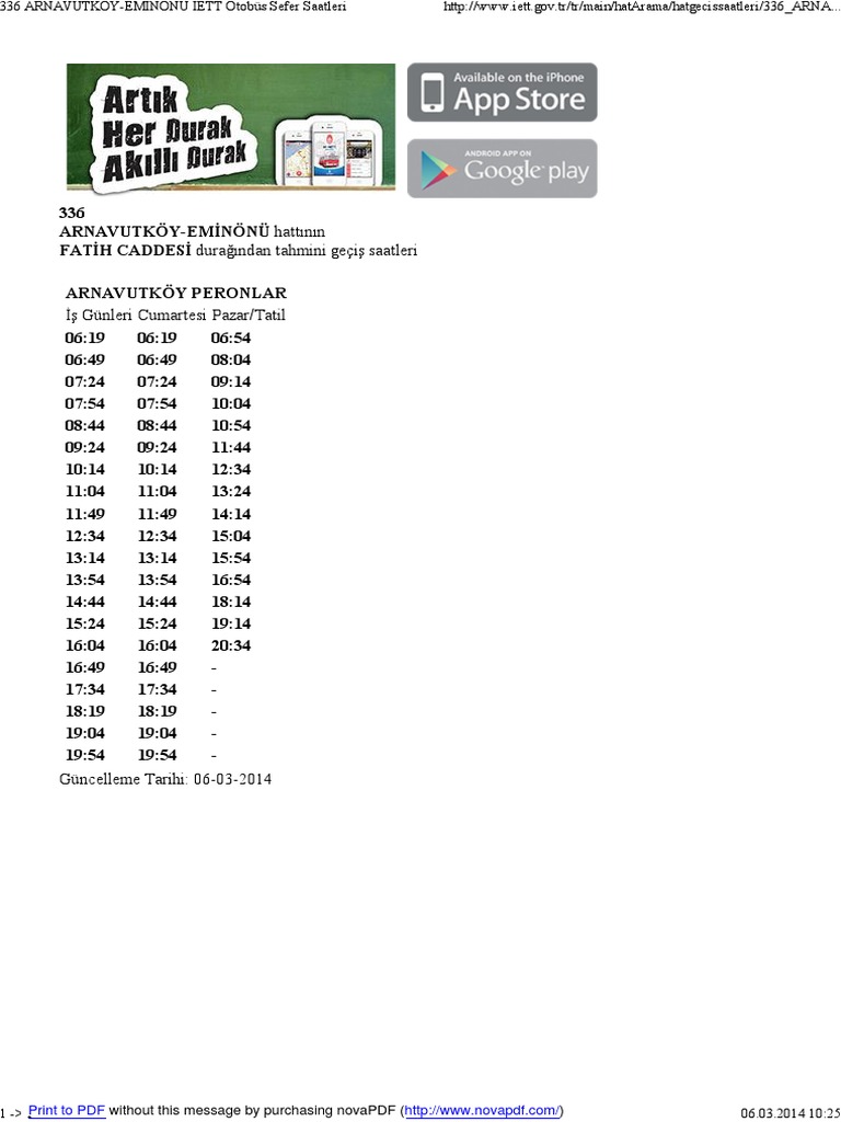 Hat 336 Hareket Saatleri Haritalar Duraklar Arnavutkoy