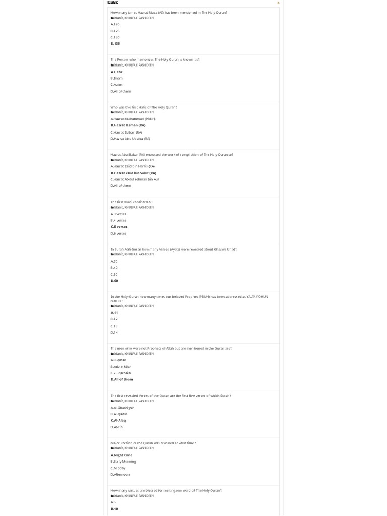 1000 Islamyat Mcqs Umar Muhammad