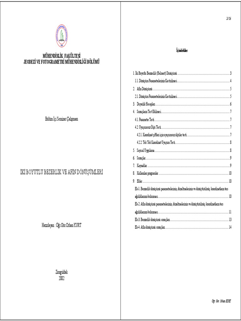 T C Selcuk Universitesi Fen Bilimleri Enstitusu Jeodezide Kullanilan Donusum Yontemlerinin Prgramlanmasi Pdf Free Download