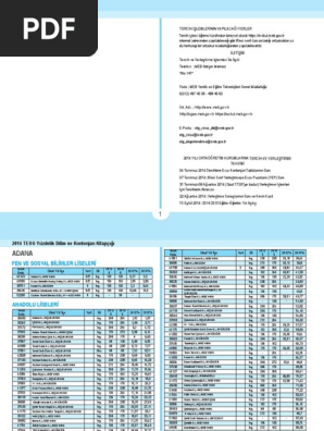 2014 Teog Kontenjanlar Ve Yuzdelik Dilimler