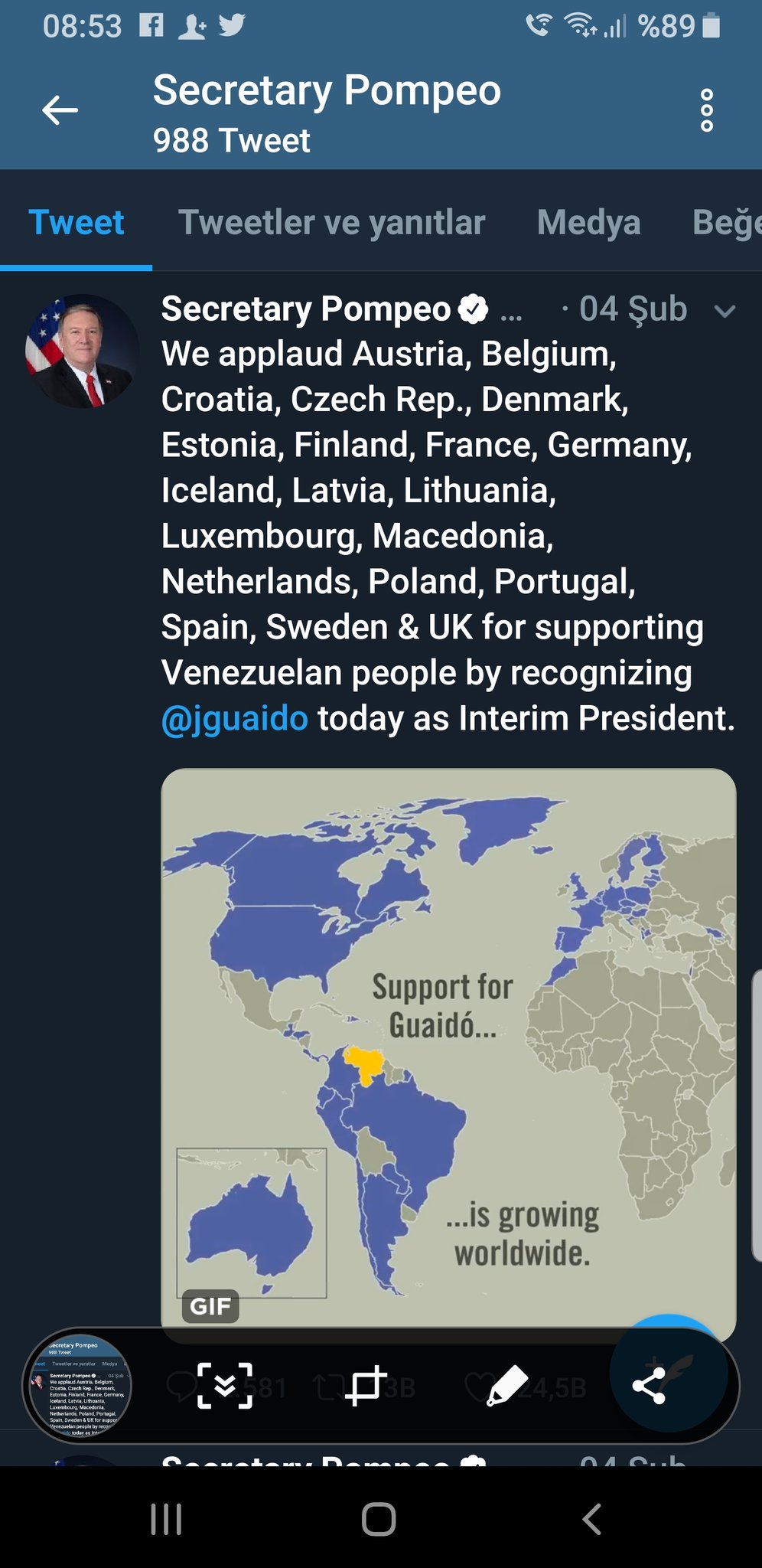 Ertan Ozyigit على تويتر Sevgili Dostlar 21 Haziranda Paylastigim Vadedilmis Topraklar Haritasini Google Prof Lari Ve Cakma Arastirmacilar Abartili Bulmuslar Iste Size Saglamasi Abd Disisleri Bakani Mike Pompeo Nun 4 Subat Guaido Yu Destekliyen Tweetdeki