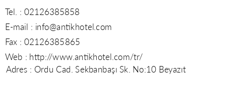 Antik Hotel Istanbul Iletisim