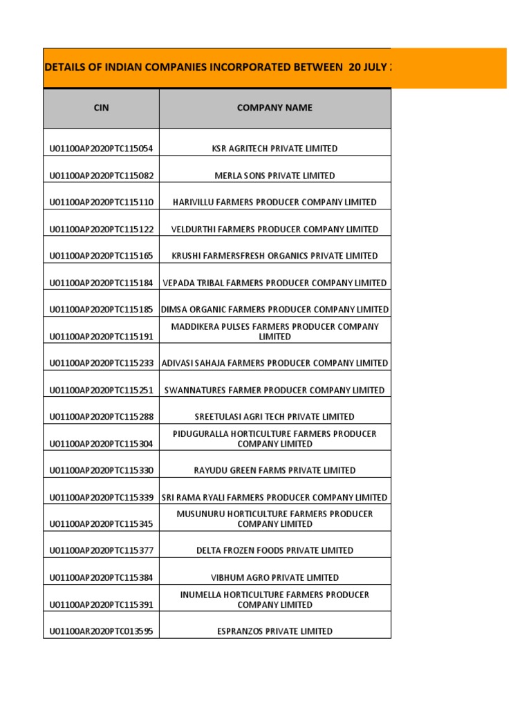 List Of Companies Registered For Year 2010
