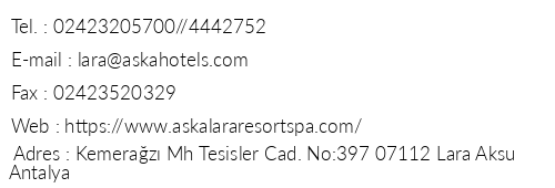 Otel Harita Aska Lara Resort Spa Otel Iletisim