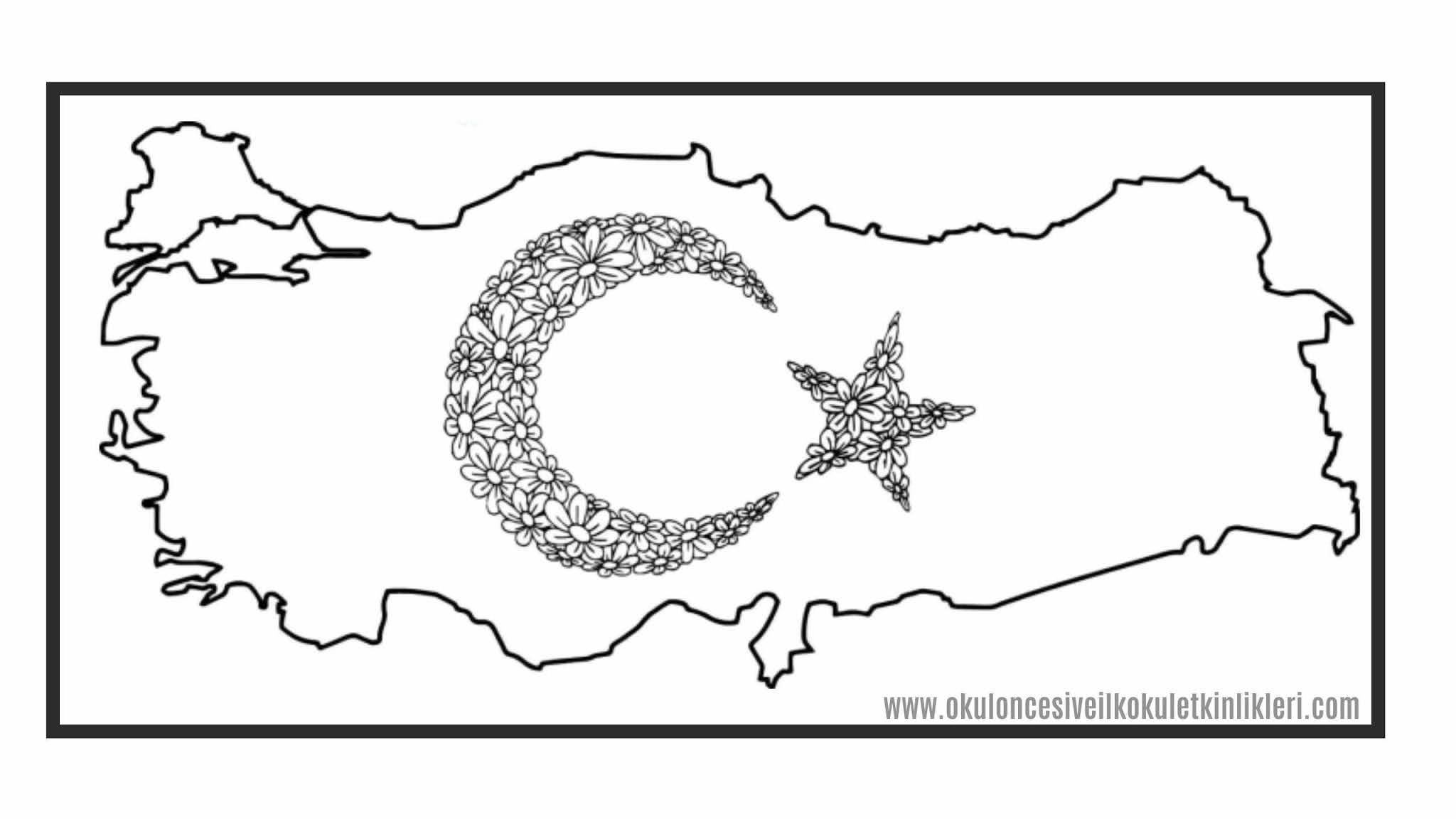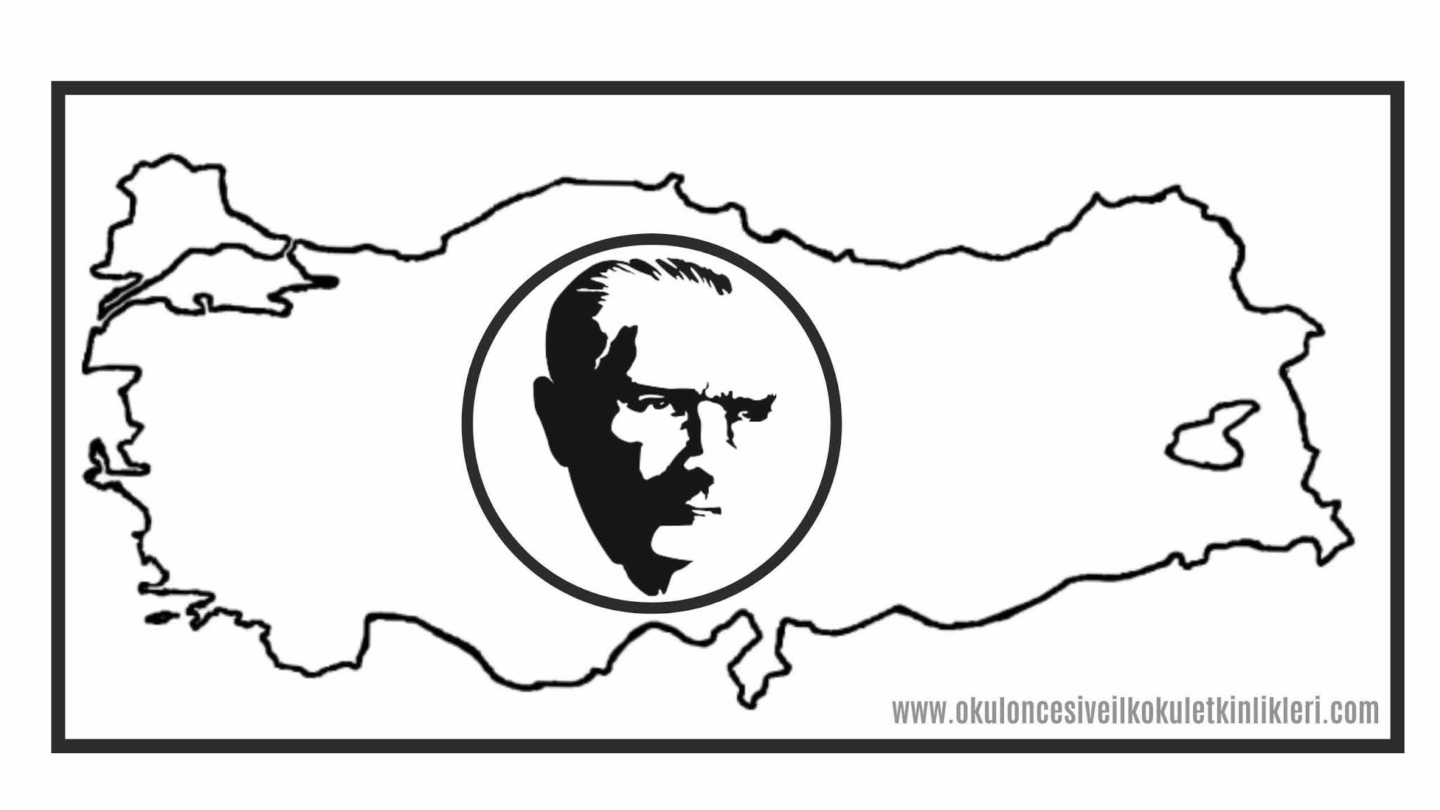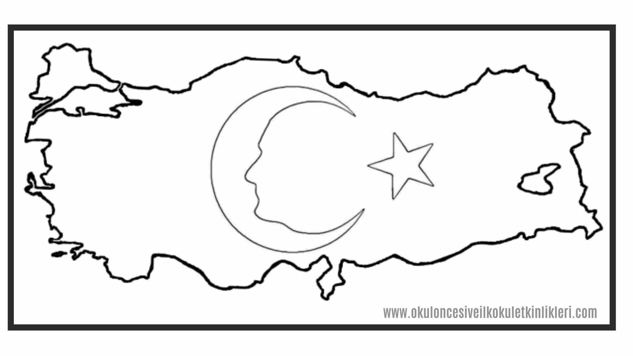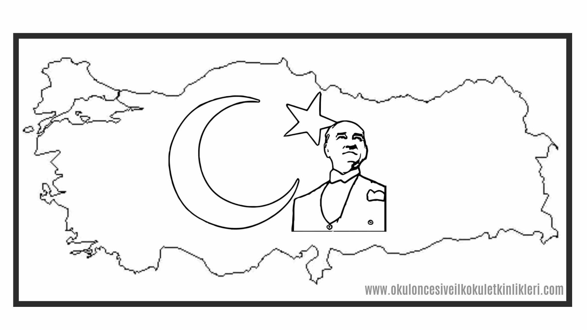 Bayrakli Turkiye Haritasi Ataturk Ve Turk Bayragi Boyama Sayfalari Okul Oncesi Etkinlikleri