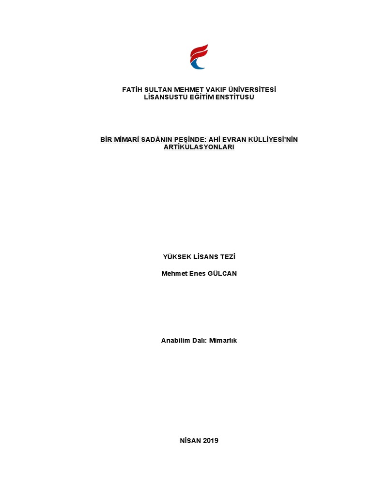 Mehmet Enes Gulcan Bir Mimari Sadanin Pesinde Ahi Evran Kulliyesi Nin Artikulasyonlari