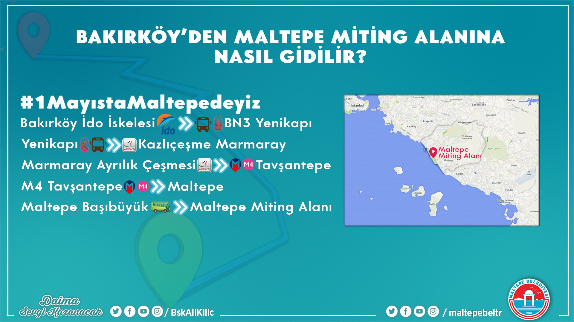 Maltepe Belediyesi On Twitter Taksim Mecidiyekoy Bakirkoy Ve Kadikoy Den Maltepe Miting Alani Na Gelmek Isteyen Emekciler Bu Guzergahlari Kullanabilirler Herkesi 1 Mayis Ta Emegin Ve Dayanismanin Sesini Yukseltmek Icin Maltepe Ye Bekliyoruz