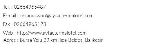 Otel Harita Aytac Termal Otel Otel Iletisim