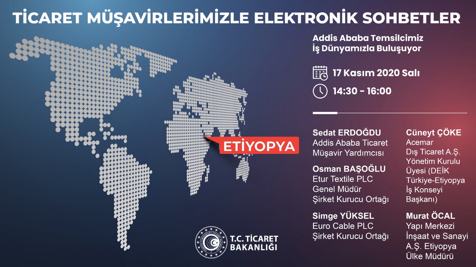 T C Ticaret Bakanligi V Twitter Addis Ababa Temsilcimizin Is Dunyamizla Bulusacagi Etiyopya Elektronik Sohbetler Toplantisina Siz De Katilabilirsiniz Kayit Icin Https T Co Uoqbjp3uim Https T Co Ezkekyjown