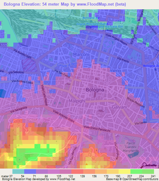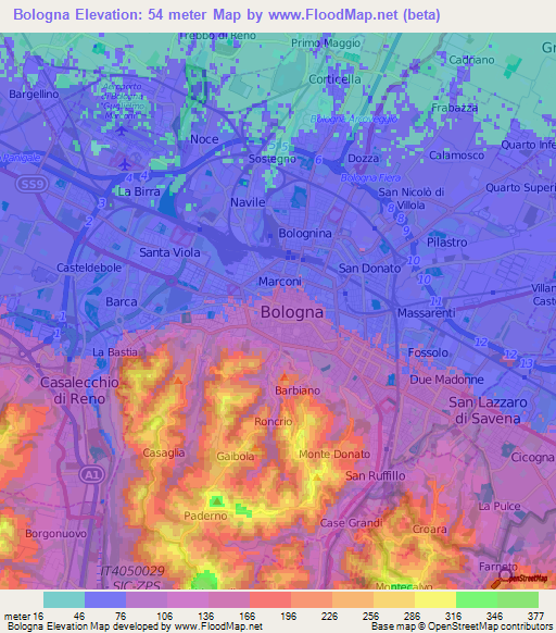 Elevation Of Bologna Italy Elevation Map Topography Contour