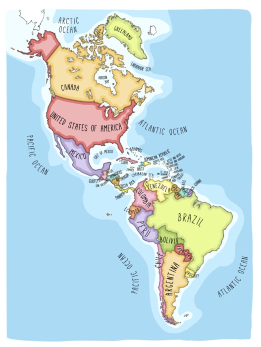 El Americas Cizilmis Vektor Harita Birlesik Devletleri Kanada Meksika Brezilya Arjantin Kuba Kolombiya Venezuela Da Dahil Olmak Uzere Kuzey Ve Guney Amerika Nin Renkli Karikatur Tarzi Haritacilik Duvar Resmi Pixers