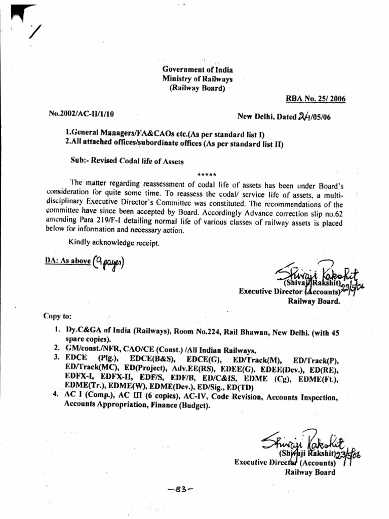 Codal Life Of All Railway Assets