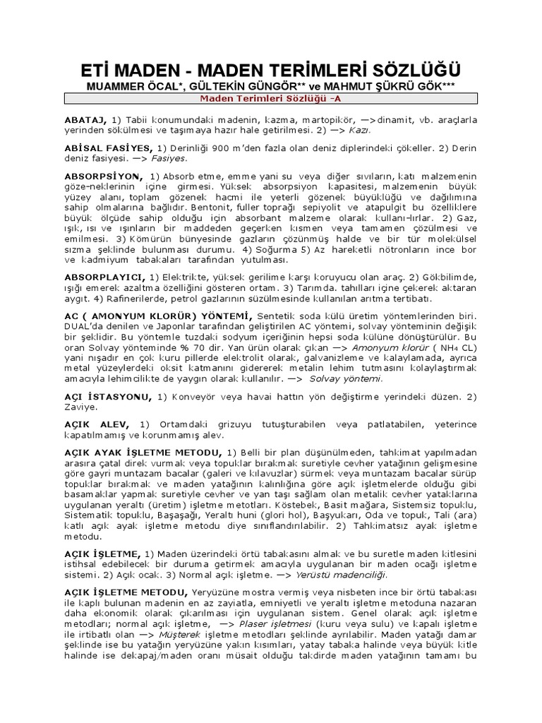 Madencilik Terimleri Sozlugu
