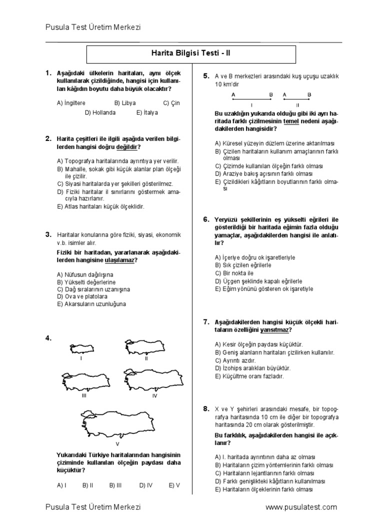 Harita Bilgisi Olcekler Cografya Sorulari Online Test Cografya Test Soru Bankasi Lise 1 Lise 2 Cikmis Sorular Ekol Hoca Ygs Lys Oss Kpss