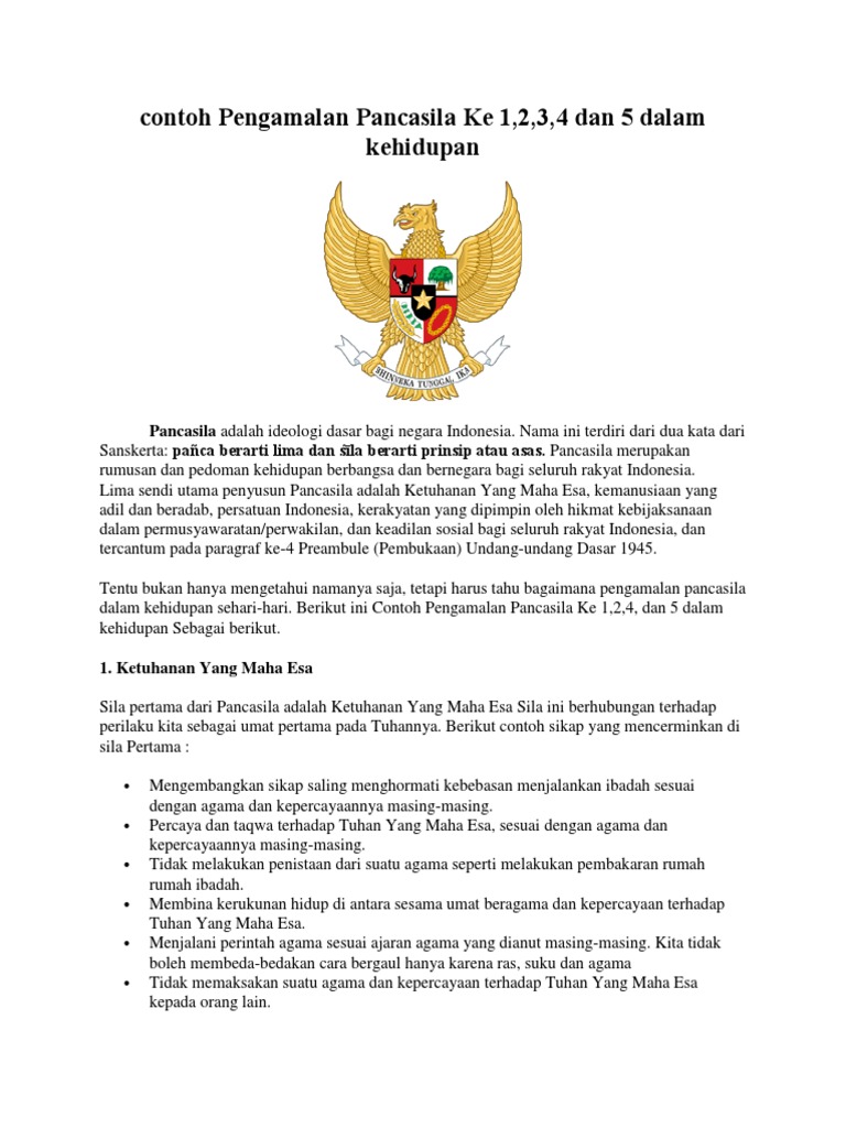 Pengamalan Sila Ke 1 2 3 4 5 Beserta Contohnya