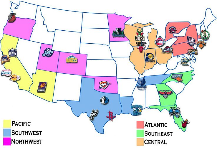 Nba Map Teams Logos Sport League Maps Maps Of Sports Leagues